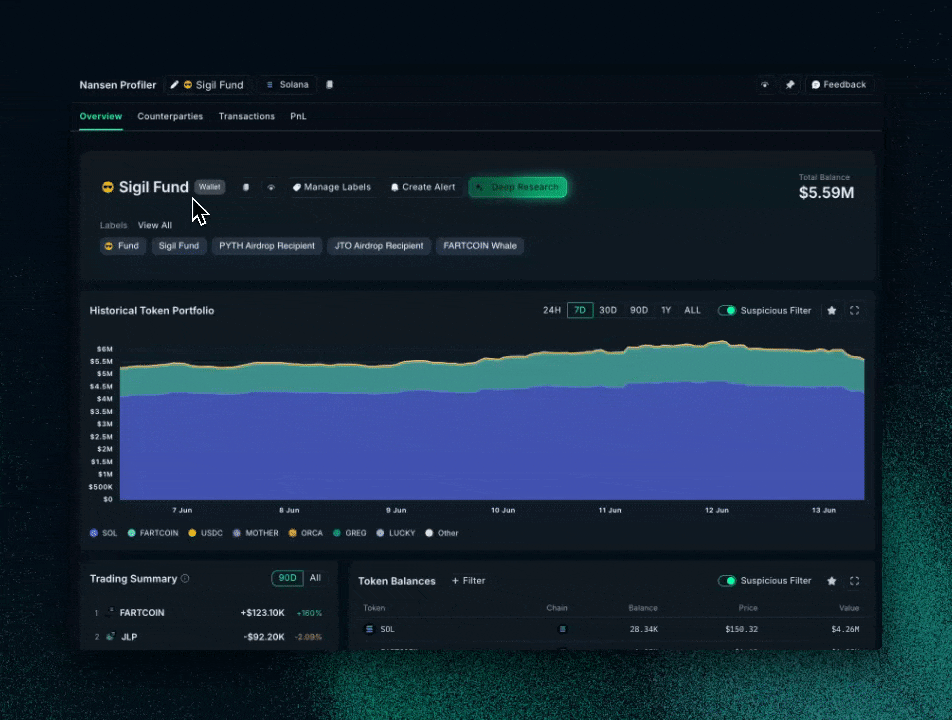 Deep research allows you to dig deep on everything you want to know about a wallet, particularly ownership and behavioral patterns.