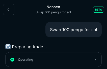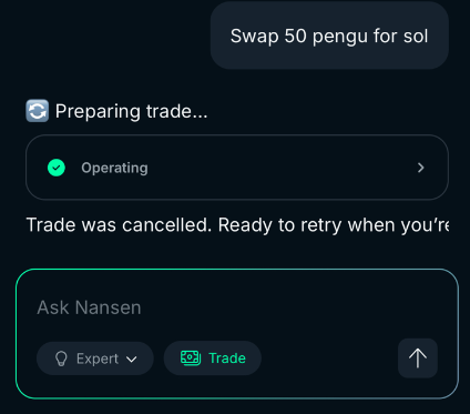 On Nansen AI (mobile-app): Our AI agent can execute trades through conversational interface or standard swap experience.